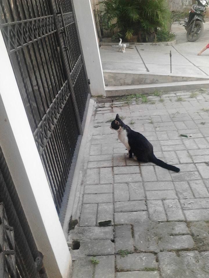 yang item kucing temen ane yang moto. Kayaknya pengen nolongin juga.