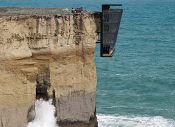 Quote:Cliff House adalah sebuah rumah yang terinspirasi dari siput kecil yang senang menggantung dilambung perahu. Di dalam rumah ini terdapat tiga kamar tidur yang tergantung di tebing terjal.