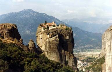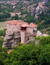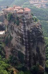 Gedung tersebut sebenarnya adalah sebuah biara yang sampai saat ini masih berfungsi. Konstruksi dari bangunan yang menantang ini sebenarnya menghadap kota Yunani Kalambaka.