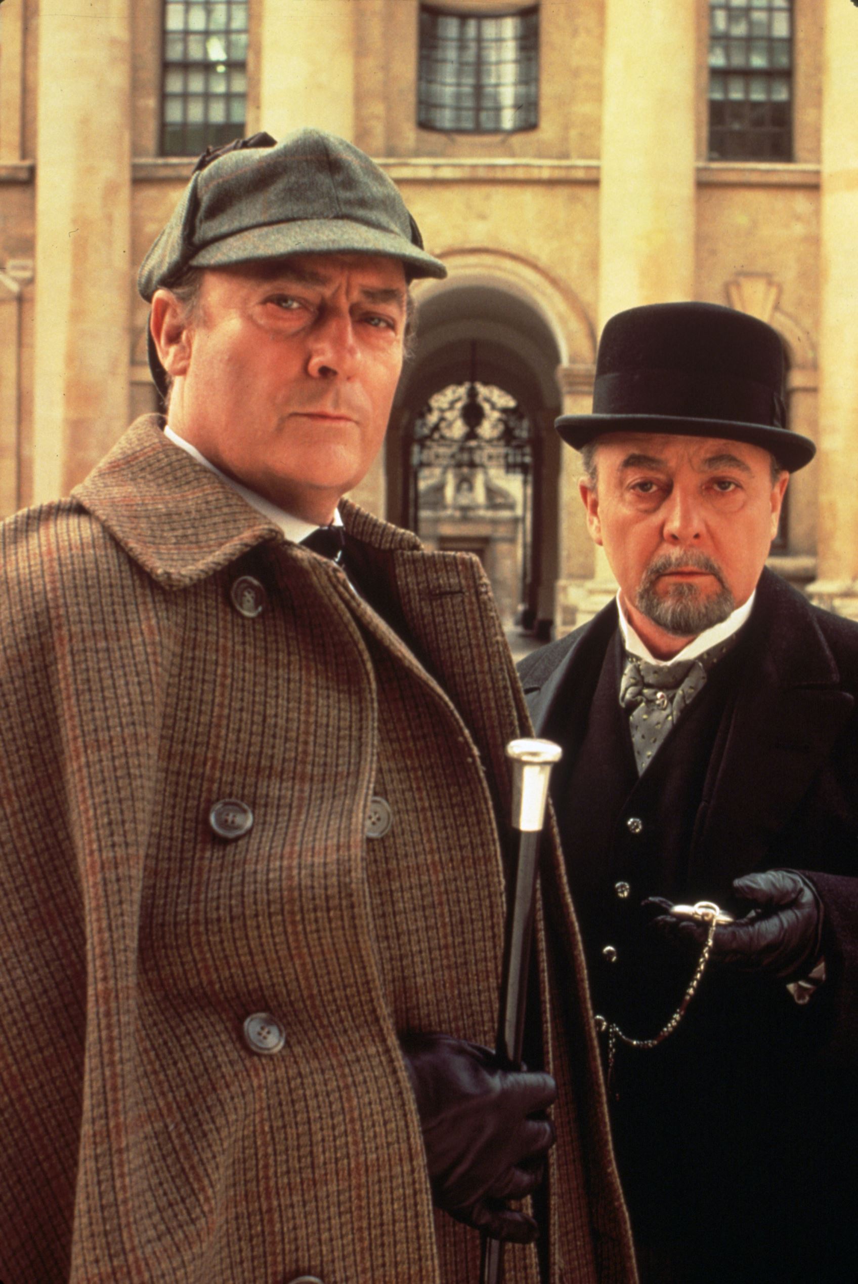 Foto: Jeremy Brett dan Edward Hardwicke, berpose sebagai Sherlock Holmes dan Dr. Watson dalam serial "Mystery"